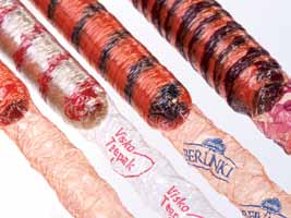 Las Wienie-Pak impresa es una funda de celulosa que combina alta productividad y manejo fácil con el mayor atractivo de sus productos. Se pueden imprimir los logotipos del cliente o según los requerimientos específicos del cliente para lograr un producto final bello y atractivo. La funda Wienie-Pak impresa está diseñada para los clientes cuyas salchichas se venden con funda, sin pelarlas. Combina excelentes características técnicas con la posibilidad de imprimir según se requiera. Ofrecemos una gama completa de colores que coincidirán precisamente con el diseño que desee.
